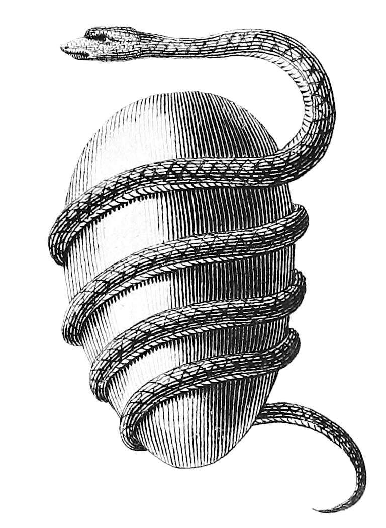 "the ancient symbol of the orphic mysteries was the serpent-entwined egg, which signified cosmos as encircled by the fiery creative spirit. the egg also represents the soul of the philosopher; the serpent, the mysteries. at the time of initiation the shell is broken and man emerges from the embryonic state of physical existence wherein he had remained through the fetal period of philosophic regeneration." —the secret teachings of all ages by manly p. hall